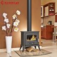 Отопительная печь-камин Kratki Koza K7 термостат мощностью 5 кВт подходит для загородных домов площадью 50-70 м2. В качестве топлива можно использовать древесину лиственных пород и уголь в брикетах. Печь изготовлена полностью из чугуна, дверца с большим жаропрочным стеклом. Печь оснащена универсальным выходом дымохода: назад или сверху.